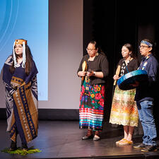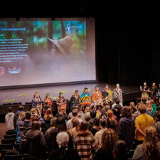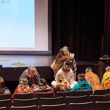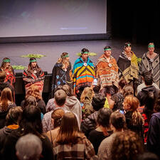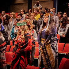 On April 27, 2022, at Abbotsford Arts Centre, the Mamele’awt Community Indigenous Education Centre honoured the 2022 Indigenous Role Models. Before entering, Role Models were covered with a blanket as a way of claiming the students, giving them a warm hug, and helping them on their journey forward, along with a headband to remind them to have good thoughts and a good mind. Chris Silver, Councillor of Semá:th First Nation began the Ceremony with a welcoming song and explained the importance of the Ceremony. Mr. Perry Smith, Director of Curriculum, was the traditional speaker and further explained the meaning of the day and how protocols are in place to ensure the Ceremony is done well, with a good heart and a good mind. Students were brought in by Tyrone Thomas, Jessi Old Coyote, and Tlatsemot leading in an honouring song as the students were brought forward into the space. Each student was honoured on stage by either their Indigenous Support Worker or Teacher for Indigenous Success, who expressed each student's hard work, dedication to culture, and future goals which brought them to be honoured as Role Models. The day was filled with gratitude and inspiration as we celebrate these students' accomplishments. The Honouring Ceremony was live-streamed and can be viewed on the Abbotsford School District YouTube page.